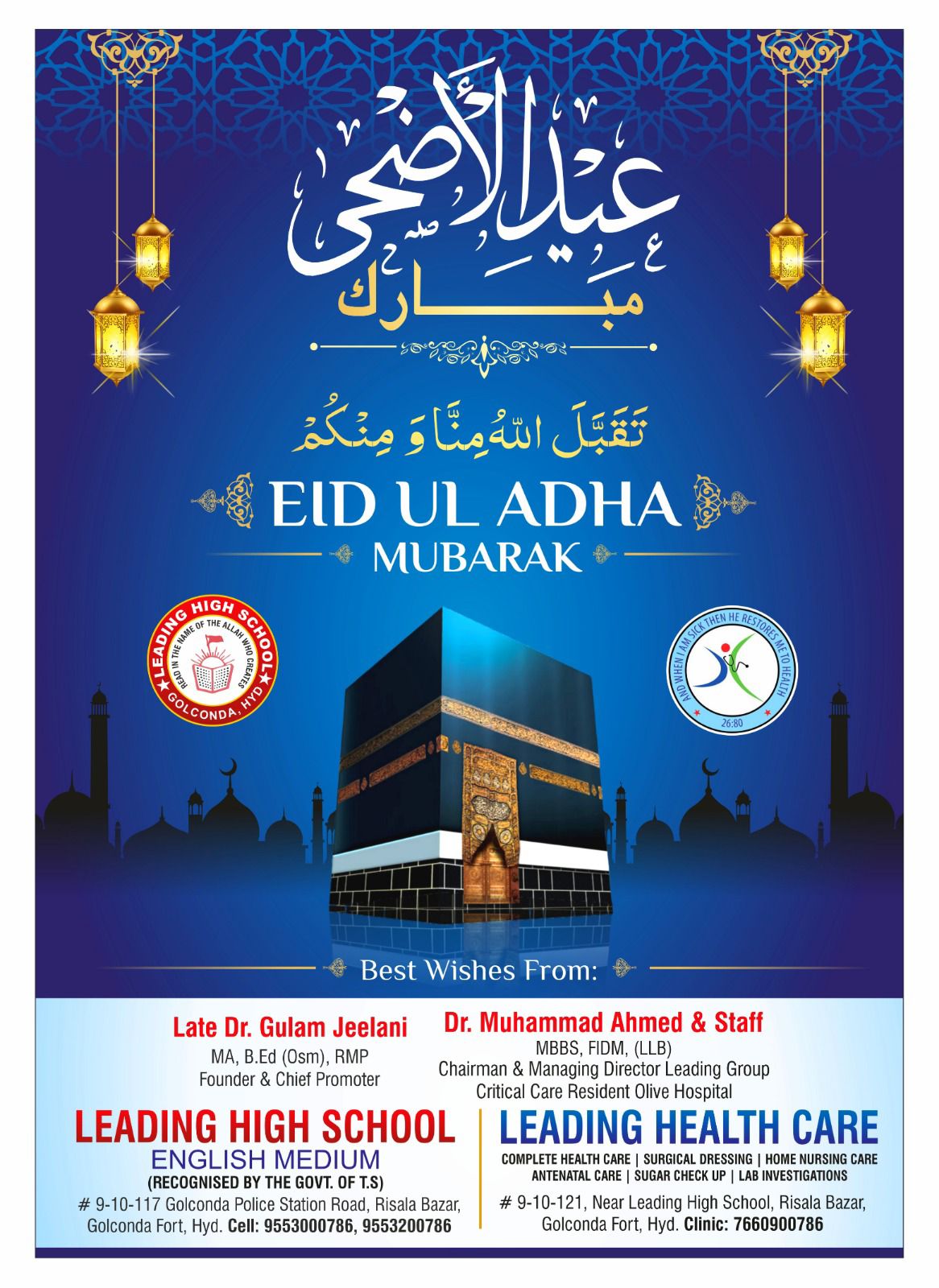Eid Ul Adha Mubarak from Leading High School and Leading Health Care As the joyous occasion of Eid Ul Adha approaches, we extend our heartfelt greetings to all.